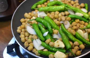 Quick and easy, this recipe combines hearty chickpeas with sweet peppers. Try this as a side dish or main dish... it is vegetarian but full of protein and healthy fats!
